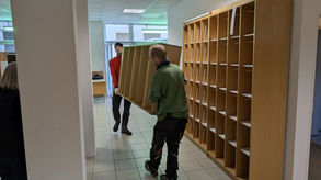 Seit Monaten wurde gesucht, seit Wochen wurde gepackt, seit Tagen wurde geplant - der große Umzug. Am heutigen Samstag war es dann soweit. Viele helfende Freunde der Stadtbibliothek waren im Vorfeld beteiligt beim Packen der Bücher. Dutzende haben nun mit angepackt - Freunde, Wasserballer vom SV Halle, Obdachlose der Wärmestube und viele weitere helfende Hände - Die LKW's fuhren hin und her, gefüllt mit Regalen, Bücherkisten, Tischen, Stühlen und sonstigen Utensilien. Im neuen Domizil konnten durch die konkreten Vorstellungen und Vorbereitungen des Umzugsplaners (ein riesiges Dankeschön an Wolfgang Lindner) die Regale gleich an die richtigen, neuen Positionen gestellt werden. Wunderbar ineinander verzahnend wurde gemessen, aufgestellt, gereinigt und verschraubt.